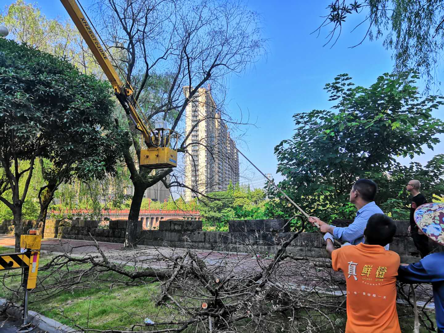 為進一步提升中心城區(qū)綠化景觀水平,鞏固文明創(chuàng)建工作成果,近日,市政園林公司組織人員對中心城區(qū)主次干道、公園廣場的枯樹、危樹進行了隱患摸底排查、統(tǒng)計,同時,出動高空作業(yè)車、油鋸等機械設(shè)備對死樹、危樹、干枯枝進行全面清理,并及時清運枯枝及周邊垃圾。由于施工地點位于中心城區(qū),車流量、人流量較大,為保障施工安全,公司避開高峰期,設(shè)置了安全警示標(biāo)志,并安排專人在路口進行引導(dǎo)。截止目前,已完成了云海路、音樂廣場等5處道路廣場枯死樹木的清理工作,共處理枯樹、死樹25株,消除了安全隱患,美化了環(huán)境。