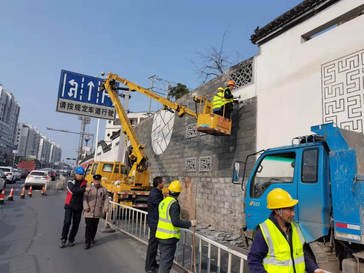 1月21日開始,市政園林公司出動高空作業(yè)車、運輸車輛及20名養(yǎng)護人員,對景觀墻文化磚及部分墻體進行了拆除作業(yè)。由于北海路是過境路,車流量大,施工作業(yè)會對交通通行產(chǎn)生一定影響,為保證作業(yè)安全,減少施工影響,現(xiàn)場作業(yè)人員利用警示牌、反光錐筒重新構(gòu)建一條臨時非機動車道,并安排人員對車輛進行疏導(dǎo)。此次拆除工作共持續(xù)三天,在拆除工作完成后,公司還設(shè)置了警示標(biāo)志,提醒過往市民注意安全。