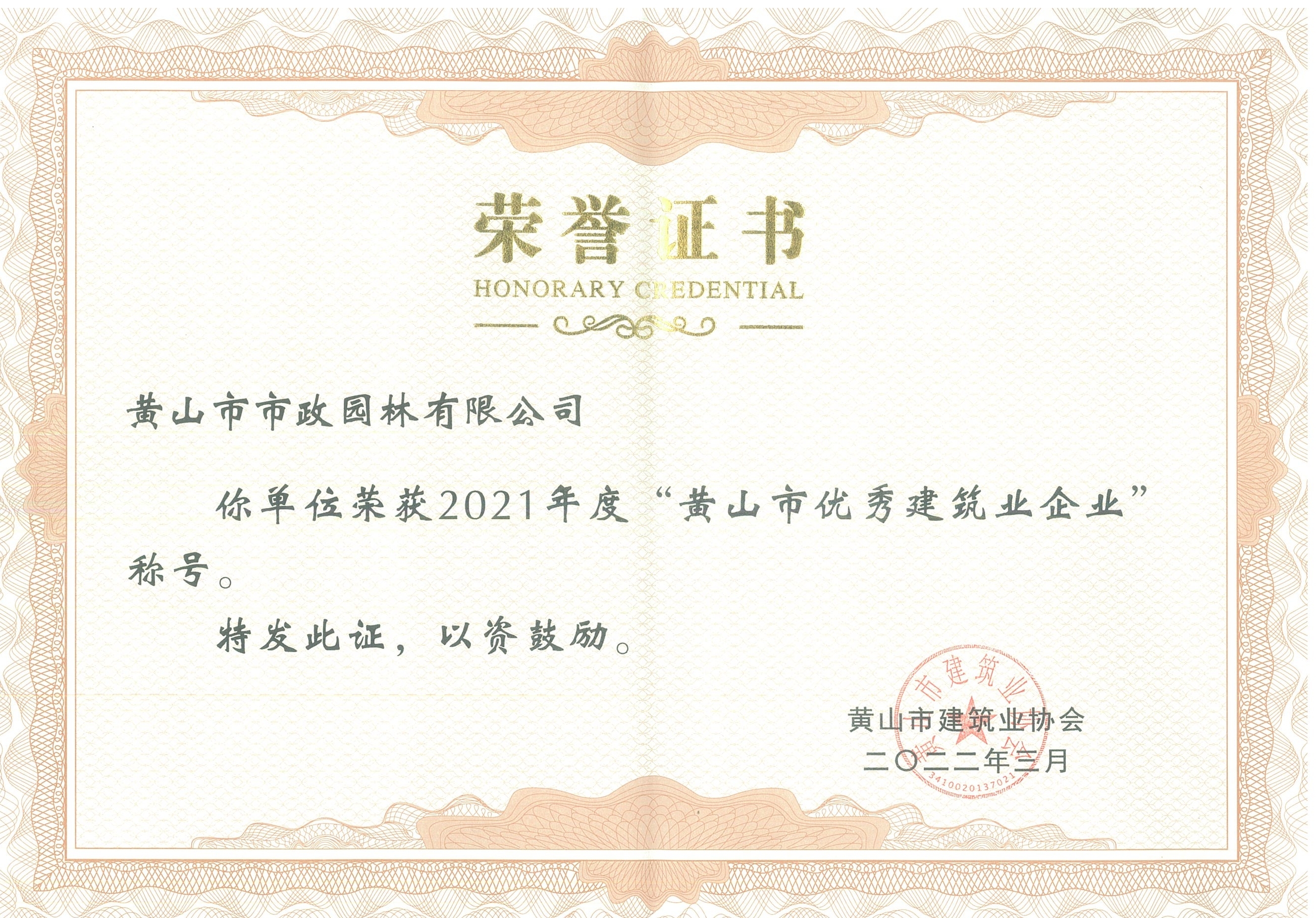 為提升我市建筑企業(yè)和工程項(xiàng)目整體管理水平,打造優(yōu)秀品牌,促進(jìn)我市建筑業(yè)高質(zhì)量發(fā)展。3月17日,黃山市建筑業(yè)協(xié)會發(fā)布《關(guān)于公布2021年度黃山市建筑業(yè)企業(yè)等評優(yōu)名單的通知》,黃山市市政園林有限公司被授予“2021年度黃山市優(yōu)秀建筑企業(yè)”榮譽(yù)稱號。