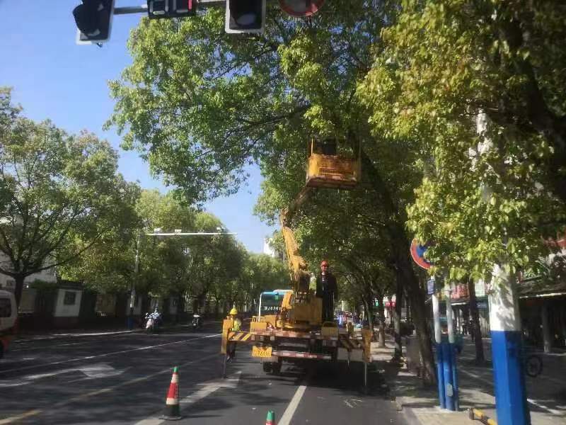 為了保障路燈夜間照明效果和出行安全,市政園林公司出動(dòng)高空作業(yè)車1輛,作業(yè)人員10名對(duì)該路段的行道樹(shù)進(jìn)行修剪。本次修剪工作于4月20日結(jié)束,共修剪行道樹(shù)20余株。