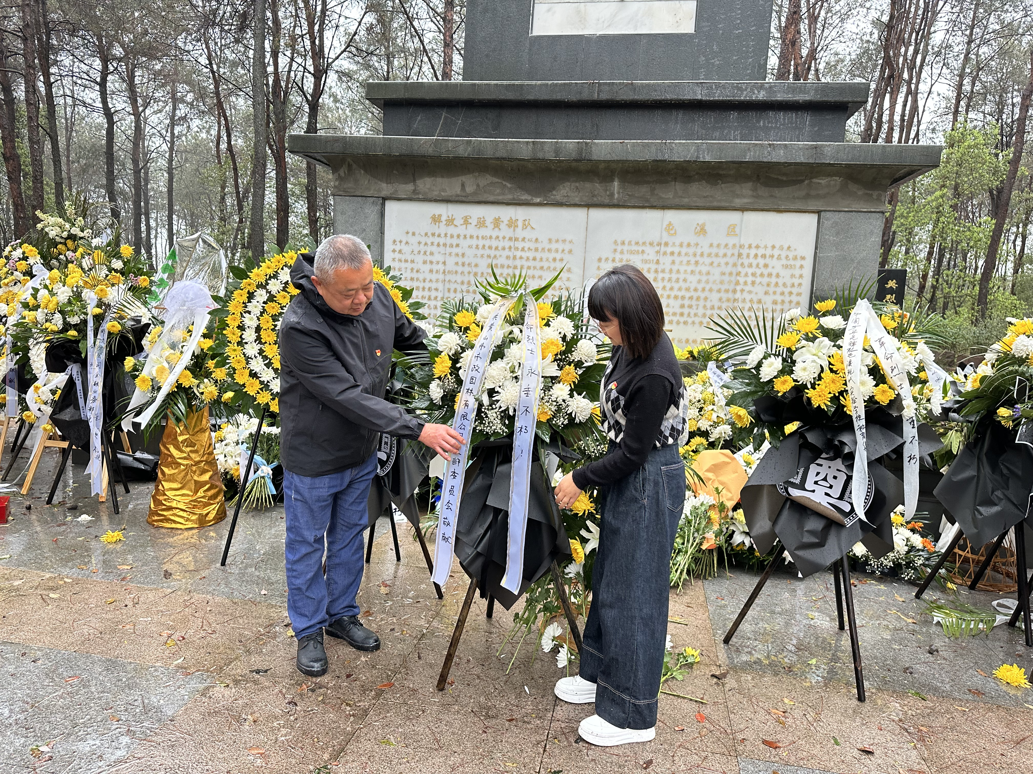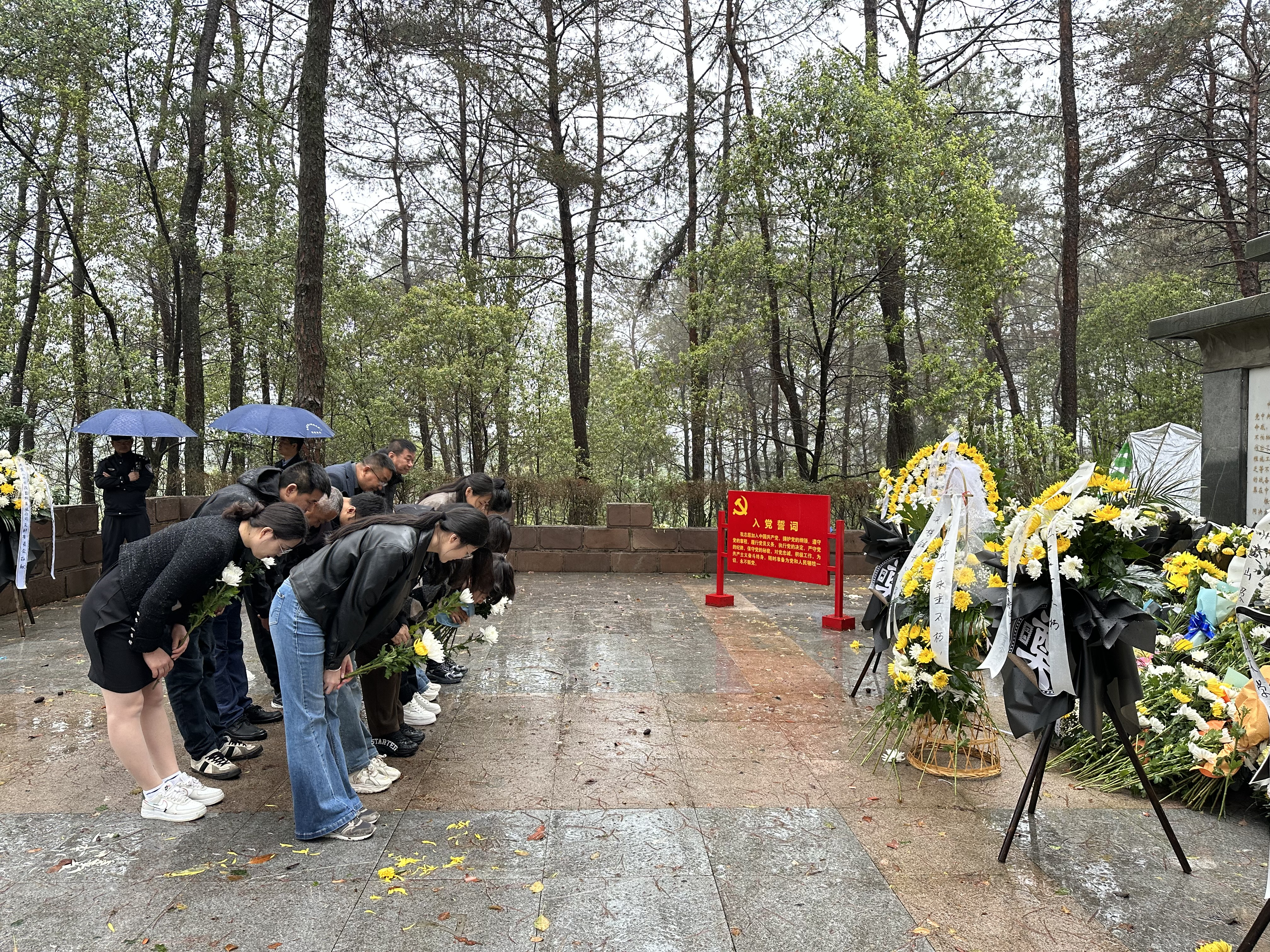 細(xì)雨中的烈士紀(jì)念碑旁松柏蒼翠,莊嚴(yán)肅穆,全體人員整齊列隊(duì),神情莊重,向?yàn)橹袊嗣窠夥攀聵I(yè)和共和國建設(shè)事業(yè)英勇獻(xiàn)身的烈士默哀致敬,行鞠躬禮,并敬獻(xiàn)花籃、鮮花,以深切緬懷革命先烈的英雄事跡和豐功偉績(jī)。