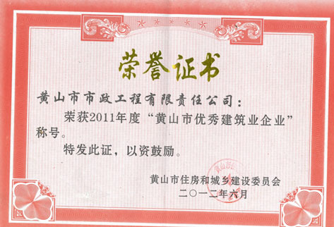 2011年黃山市優(yōu)秀建筑業(yè)企業(yè)