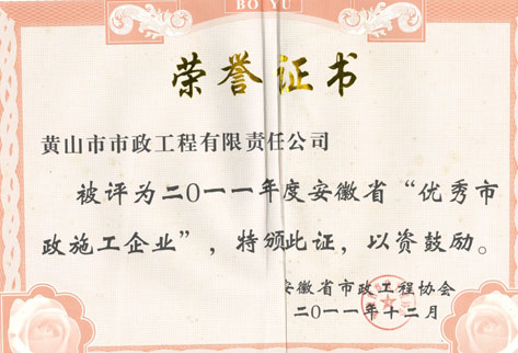 2011年度安徽省“優(yōu)秀市政施工企業(yè)”
