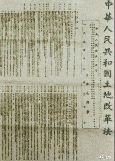 6月30日 中央人民政府公布施行《中華人民共和國土地改革法》。到1952年底,除部分少數(shù)民族地區(qū)外,土地改革在中國大陸基本完成,封建土地所有制被徹底摧毀。