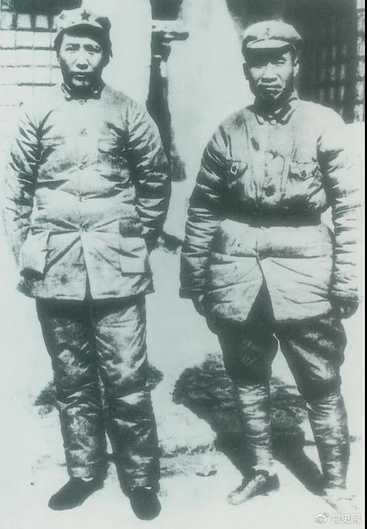1937年7月7日,盧溝橋事變爆發(fā)。8日,中共中央通電全國,號召結(jié)成民族統(tǒng)一戰(zhàn)線抵抗日本侵略者。圖為1936年冬毛澤東和朱德在陜北。
