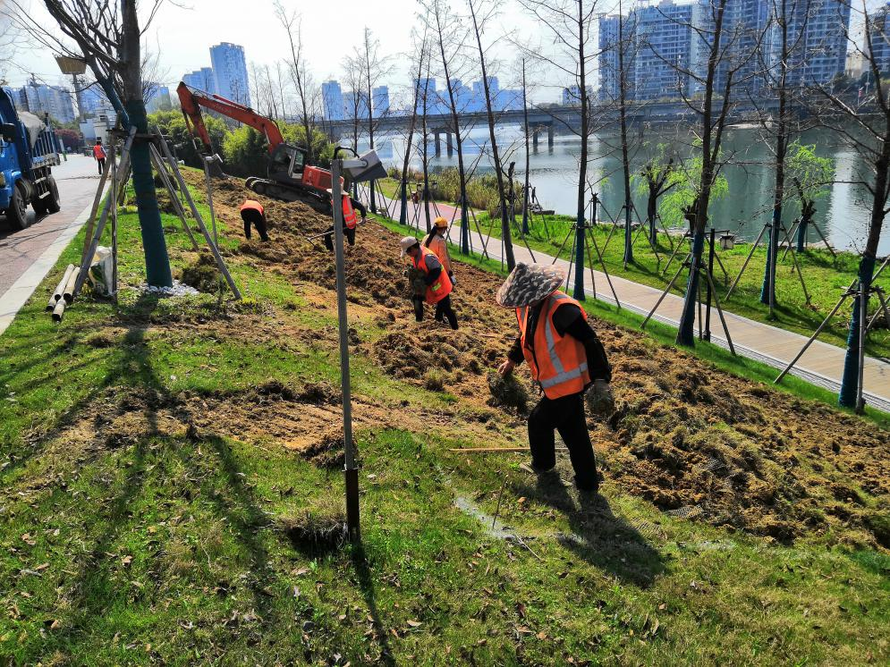 目前,公司正在組織人工機(jī)械對(duì)草坪進(jìn)行清除,并加入有機(jī)肥改良土壤,增強(qiáng)植物生長(zhǎng)勢(shì),為打造良好景觀效果創(chuàng)造條件。下一步,公司將加快工程進(jìn)度,爭(zhēng)取3月底完工,預(yù)計(jì)5月中旬形成景觀效果,為美麗屯溪增綠添彩。