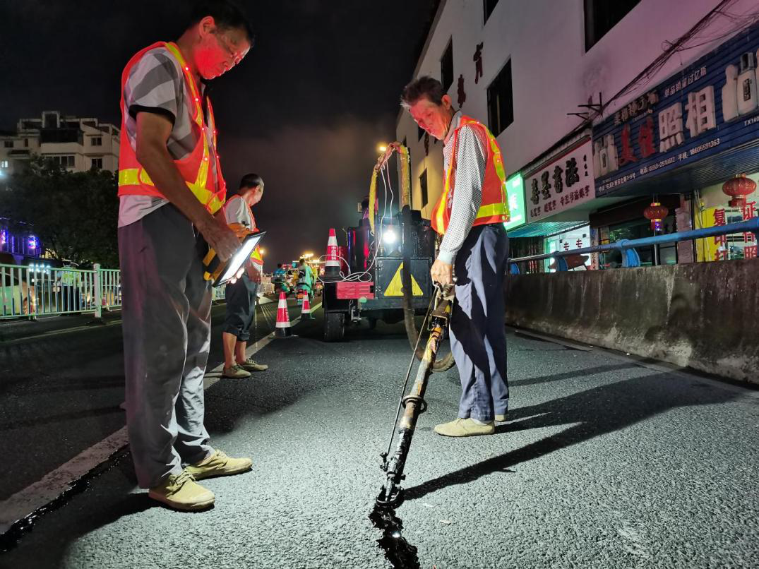 在城市慢慢沉寂的夜晚,迎著新安江的涼風(fēng),趁著車輛通行減少的施工便利條件,市政園林公司出動(dòng)灌縫機(jī)1臺(tái)和運(yùn)輸車1臺(tái),1個(gè)作業(yè)班組開展夜間作業(yè),盡量減少橋面施工對(duì)行人車輛通行影響。經(jīng)過(guò)9個(gè)多小時(shí)的作業(yè),此次預(yù)防性養(yǎng)護(hù)工作共完成瀝青路面灌縫2150m,恢復(fù)了路面平整舒適,有效防止路面進(jìn)一步開裂、滲水和老化,延長(zhǎng)了新安大橋路面的使用壽命,有效改善了新安大橋的通行環(huán)境,保證了廣大人民群眾的出行安全。(市政園林公司供稿)