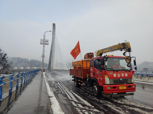 此次掃雪除冰行動共出動融雪撒布機(jī)1臺,裝載車1輛,其他應(yīng)急車輛15輛,對新安大橋、廣宇橋、黃口橋、花山橋、皖贛鐵路橋進(jìn)行融雪劑撒布作業(yè),共鋪撒融雪劑約5.6萬平方米,對于機(jī)械設(shè)備不能進(jìn)入的橋梁的人行道,公園、廣場以及觀光索橋等安排人工進(jìn)行鏟雪、掃雪。市政園林公司除了做好路面掃雪除冰的工作外,園林綠化及市政設(shè)施養(yǎng)護(hù)保障工作同步開展,共清理道路兩側(cè)和公園廣場被積雪壓斷的樹枝50余處,對戴震公園上山步道進(jìn)行臨時(shí)封閉,并協(xié)助供電部門處理新安北路倒伏高壓線。