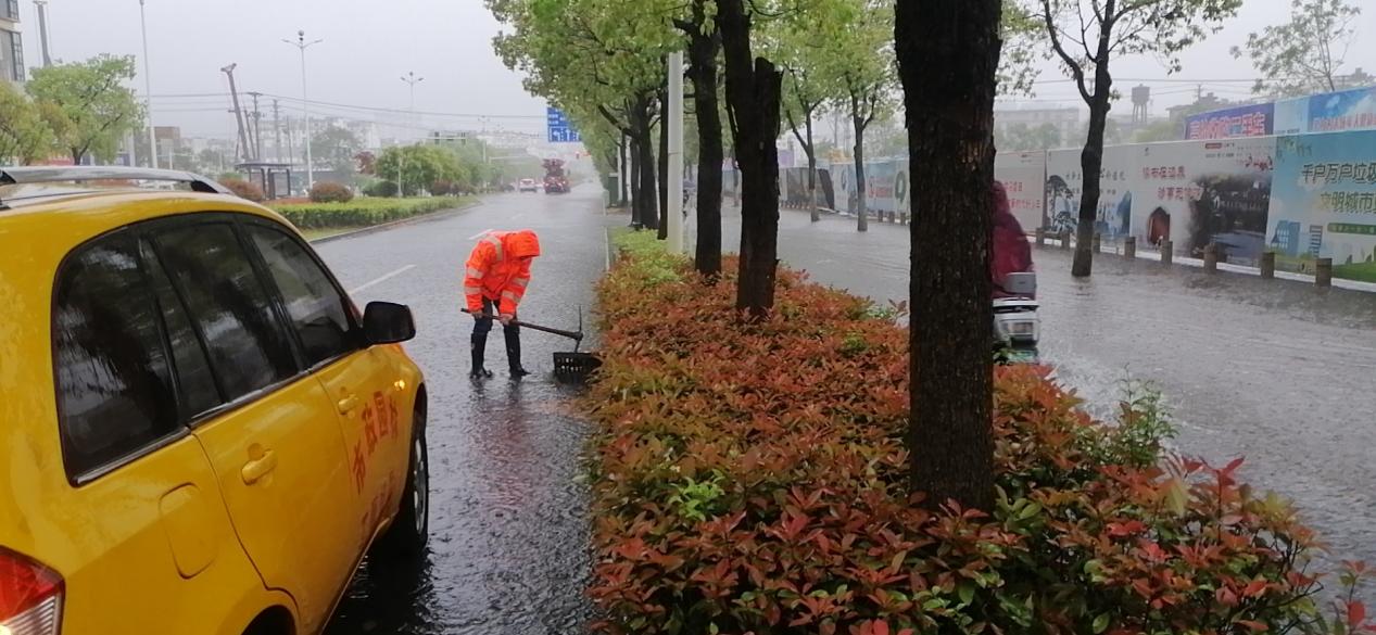 由于大量樹葉堵塞雨水箅,造成路面出現(xiàn)積水,應(yīng)急搶險人員及時打開清理雨水篦上的樹葉,加大排水量,截至上午12時,中心城區(qū)內(nèi)澇點全部排澇完成,共處置內(nèi)澇積水點11處。同時,因短時大風(fēng),中心城區(qū)出現(xiàn)樹木折斷甚至倒伏的情況,市政園林公司及時對樹枝進(jìn)行了清理,對倒伏樹木進(jìn)行扶正加固,共修剪斷枝7處,扶正倒伏樹木1株。