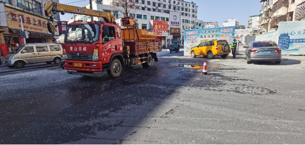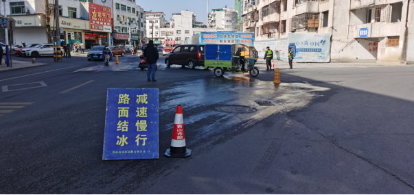 為了保證道路通行安全,市政園林公司第一時(shí)間組織搶險(xiǎn)人員和車輛設(shè)備前往現(xiàn)場開展處置工作。到達(dá)現(xiàn)場后,工作人員立即對過往行人和車輛進(jìn)行交通勸導(dǎo)、現(xiàn)場放置安全指示牌,提醒過往行人,并對結(jié)冰路段鋪撒環(huán)保型融雪劑,經(jīng)過半小時(shí)的應(yīng)急處理,路上結(jié)冰情況已基本消除,恢復(fù)了道路正常通行。