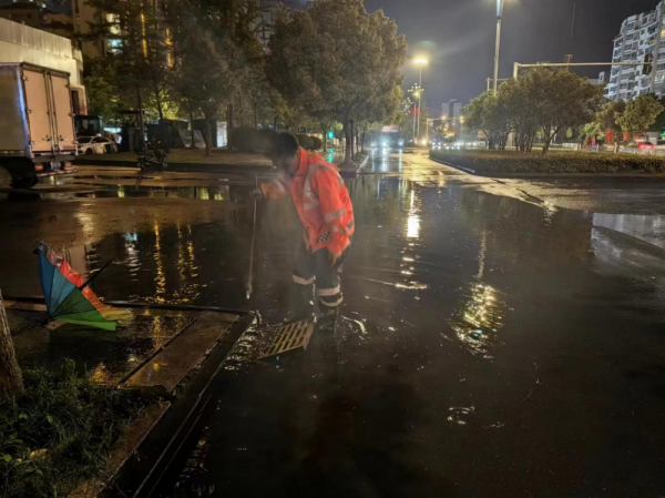 公司安排4支應急隊伍人員分區(qū)域開展巡查,對路段積水、樹木倒伏、配電設施故障情況進行實時反饋;及時排除安全隱患,做好安全防護措施,對積水嚴重區(qū)域通過打開雨水井蓋、疏通排水管道等方式緊急排水,對不能立即疏通的積水路段,通過設置安全警示牌、彩旗封閉部分路段,對過往的行人及車輛進行勸阻,避免出現(xiàn)人員、車輛被積水圍困;加強值班值守,實行領導帶班制,防汛值班人員按要求到崗并保持通訊暢通,遇到突發(fā)狀況第一時間向上級匯報。