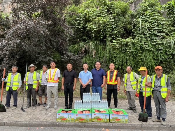 帶著對一線員工的牽掛,7月18日,市政園林公司領導班子帶隊,慰問組一行先后前往花山路瀝青路面養(yǎng)護現(xiàn)場、瀝青混凝土生產(chǎn)廠區(qū)、休寧縣學府路、新安北路擋土墻重建項目,為高溫作業(yè)、露天施工一線施工人員送上西瓜、礦泉水等防暑降溫物品和防暑藥品。同時,感謝他們的辛勤付出,并叮囑他們要注意身體,在高溫作業(yè)時要加強防暑降溫工作,要規(guī)范操作,加強自我保護,把安全問題放首位,以確保項目安全、優(yōu)質(zhì)、高效推進。