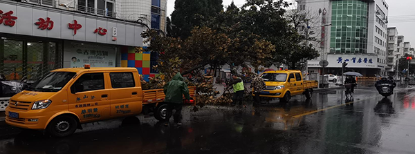 2020年1月7日13時(shí)18分,黃山市氣象臺(tái)發(fā)布大風(fēng)藍(lán)色預(yù)警信號(hào),全市出現(xiàn)6-7級(jí)陣風(fēng),預(yù)計(jì)未來24小時(shí)內(nèi)將受大風(fēng)影響,陣風(fēng)7級(jí)以上。為防止大風(fēng)天氣對(duì)城區(qū)市政設(shè)施及綠化苗木造成不良影響,確保市政設(shè)施安全平穩(wěn)運(yùn)行,市政園林公司積極行動(dòng),采取有效措施,做好應(yīng)對(duì)工作。