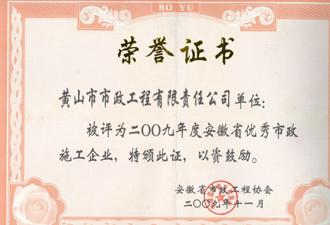 2011年度安徽省“優(yōu)秀市政施工企業(yè)”