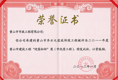 市優(yōu)質(zhì)工程證書(shū)
