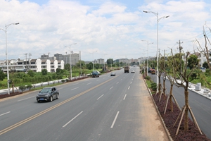 全線為三塊板形式,道路路幅寬40m,全線機動車道21m,非機動車道2*4.5m,綠化帶2*2m,人行道2*3m。